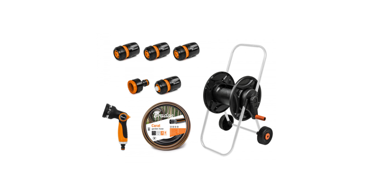 Voolikukäru vooliku-, püstoli- ja liitmikega