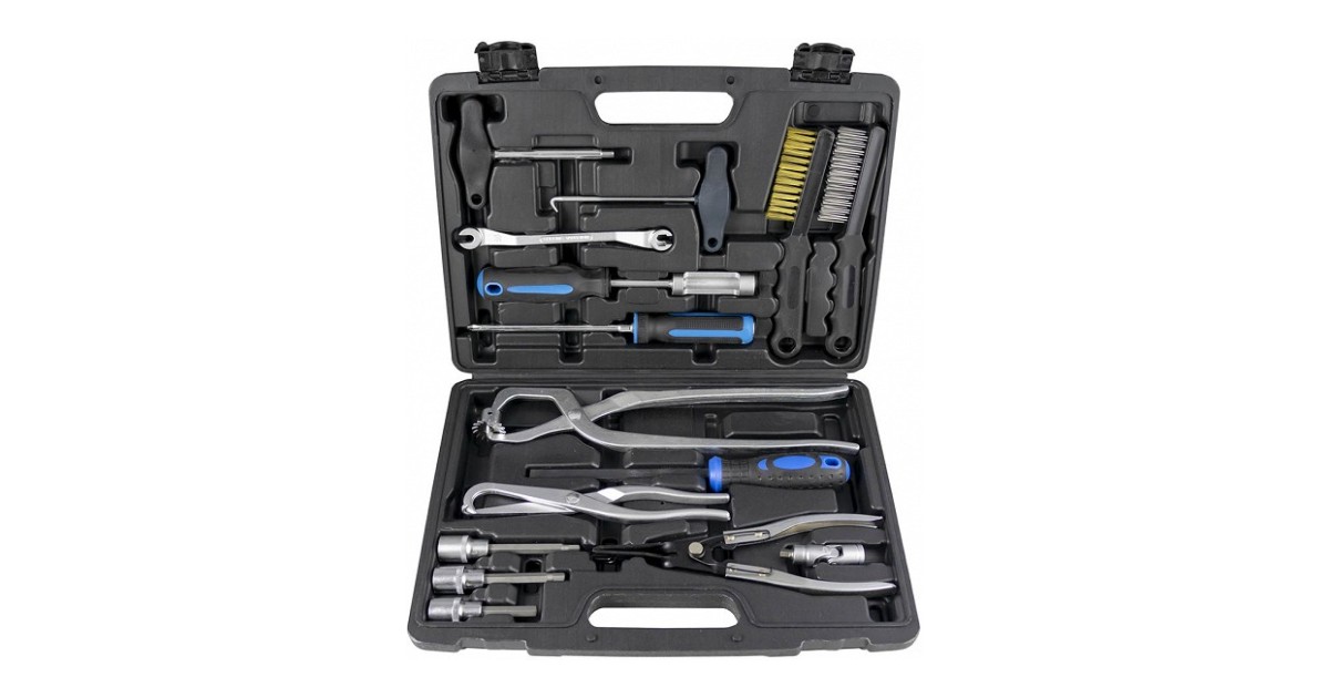 Komplekt sisaldab kõike vajalikku piduritöödeks. sisaldades harju. kuuskantvõtmeid. vedrutange. lõhikvõtit jne. Korralikus plastkohvris.