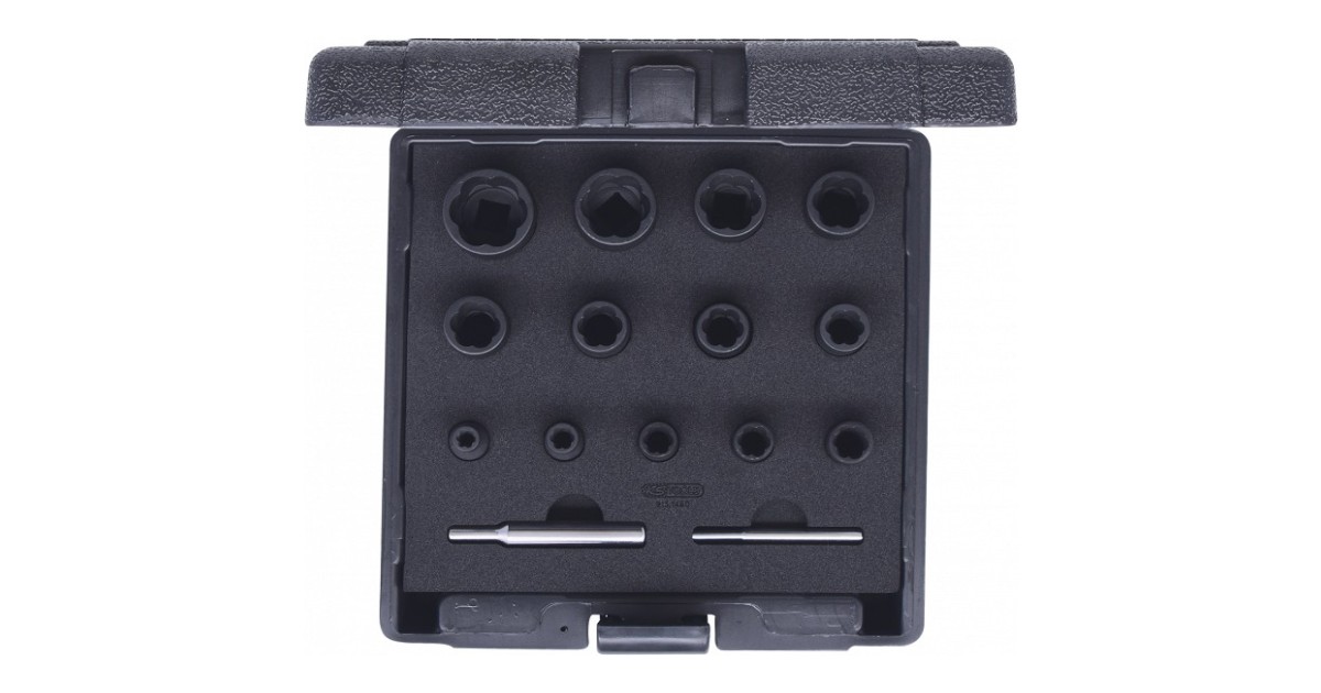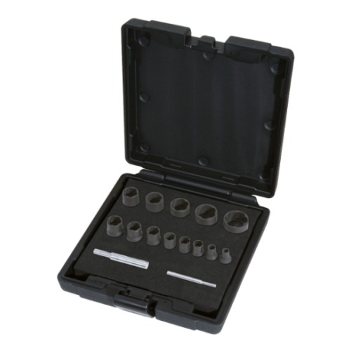 Sisemine nelikantava vastavuses DIN 3120/ISO 1174. lukustussoonega. Innovaatiline profiil agressiivse spiraalkeermega. Kahjustunud peaga mutrite ja poltide avamiseks. Keeramisel tekib kindel haare padruni ja avatava detaili pindade vahel. Väljalöömis torn. Fosfaat pinnaviimistlus. Kroom molübdeen. Vastupidavas plastikkarbis.