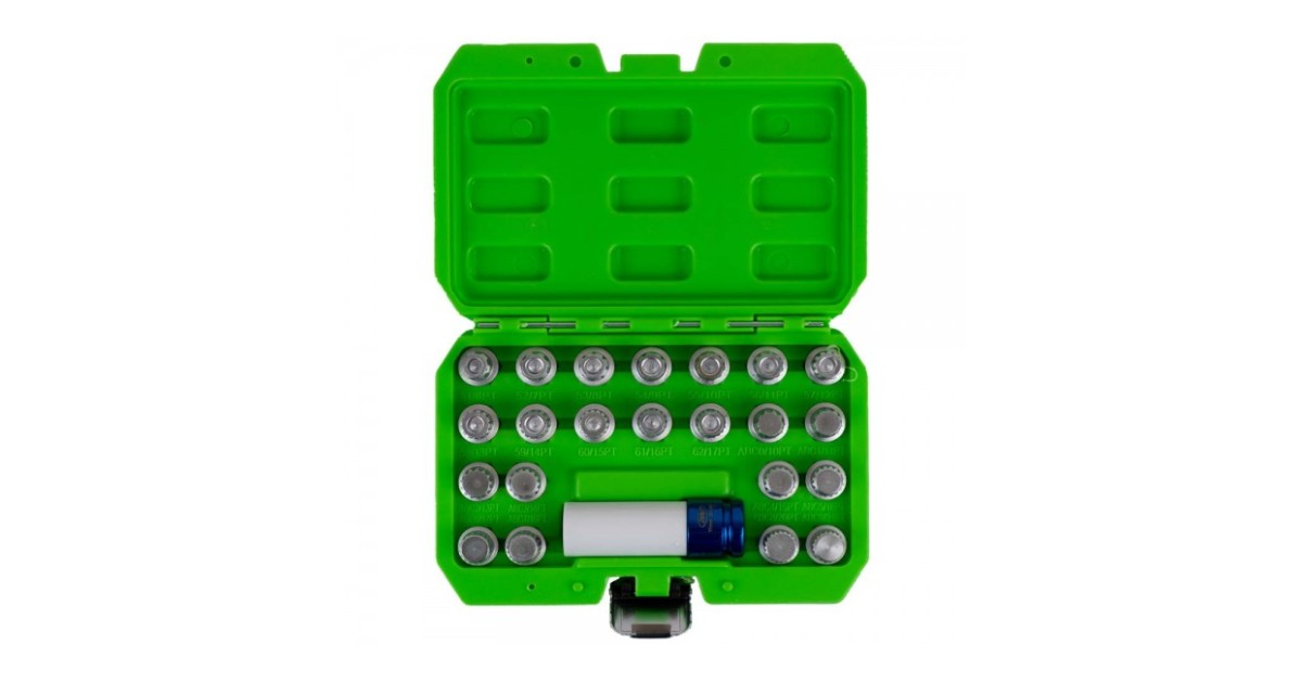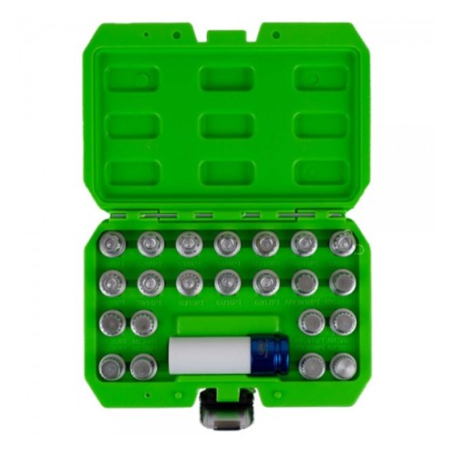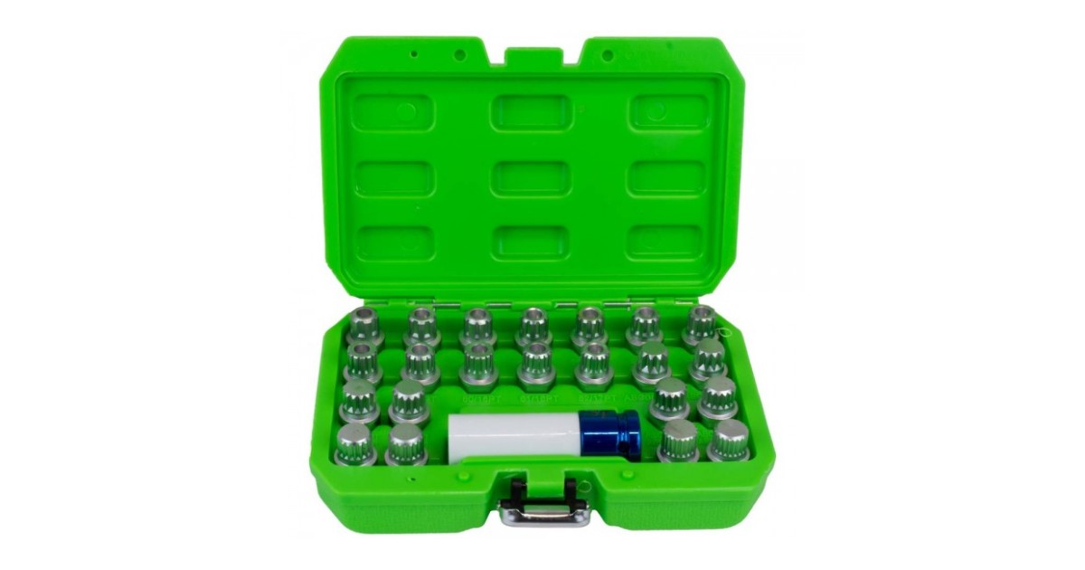 VW/VAG sõidukite enamlevinud vargapoltide avamise komplekt. Komplektis keeramispadrun. Plastkohvris.