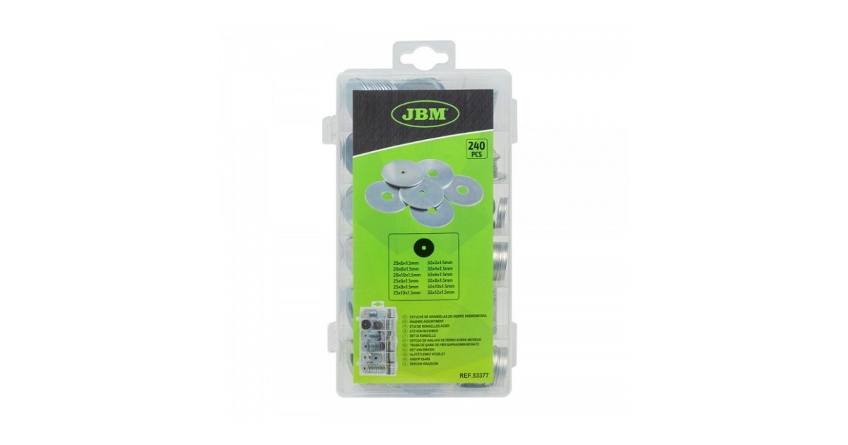 Enamlevinud seibide komplekt. mis sisaldab tavalisi seibe ja laiasid seibe. Sisaldab mõõdud 20x6-20x8-25x6-25x8-25x10 mm ja 32x2-32x4-32x6-32x8-32x10-32x12 mm. Galvaaniliselt töödeldud.