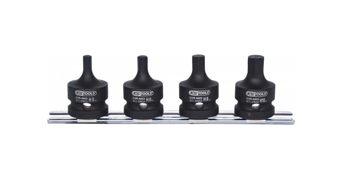 4-Os. 1/2" Lühikeste Löök-Kuuskantotsikute Kompl. 5-10Mm. Siinil Ks Tools