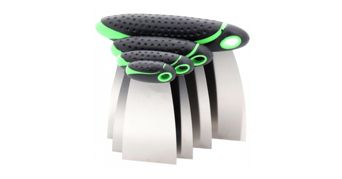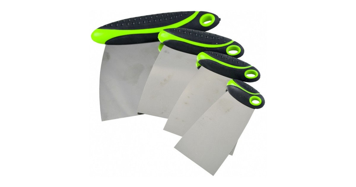 Spetsiaalterasest valmistatud pahtlilabidad. mida kasutatakse autode pahteldustöödel. Neli enamlevinud mõõtu. Terasosa küljel komposiit hoidepide.