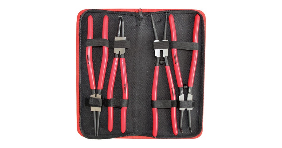 Lukustusrõnga näpitsate komplekt. 300 pikkused. Plastiga kaetud pidemeosa. Tekstiilkotis.Komplekt sisaldab:Sirge. siserõngastele90° painutatud. siserõngasteleSirge. välisrõngastele90° painutatud. välisrõngastele