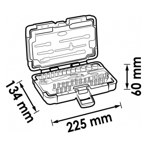 VIGOR Steckschlüssel Satz V2414N on 46-osaline padrunite komplekt. mis sisaldab katvat valikut 1/4" padruneid ja padrunotsikuid. Tööriistad on valmistatud CrV eriterasest. Tööriistad on poleeritud pinnaga. tagamaks kerge puhastatavuse. Tööriistad on vastupidavas plastkohvris. Kohvri mõõdud 134x225x6...