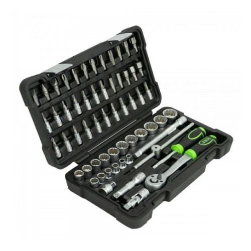 Universaalne tööriistakomplekt kodukasutusse. DYI ja väiksematesse töökodadesse. 12-kant profiiliga padrunid. Matt pinnatöötlus. Kohvri lukustid on terasest. Tugev. uue põlvkonna plastkohver. Komplekt sisaldab:3/8" padrun 6-7-8-9-10-11-12-13-14-15-16-17-18-19-20-21-22 mm3/8" pikendused 75-150 mm3/8"...