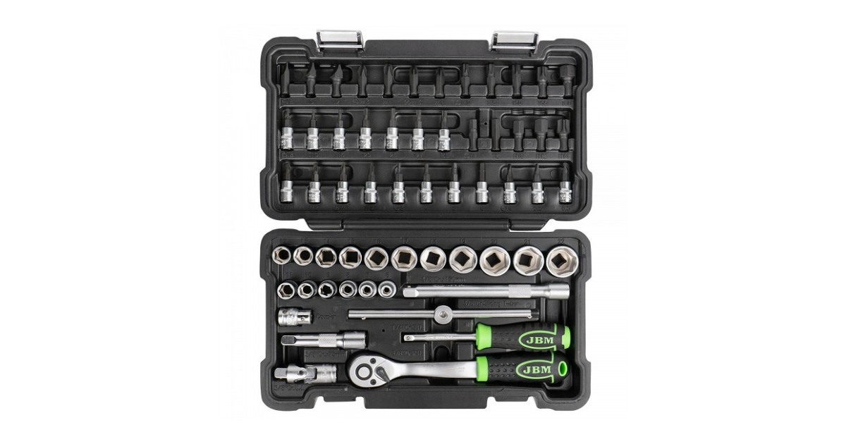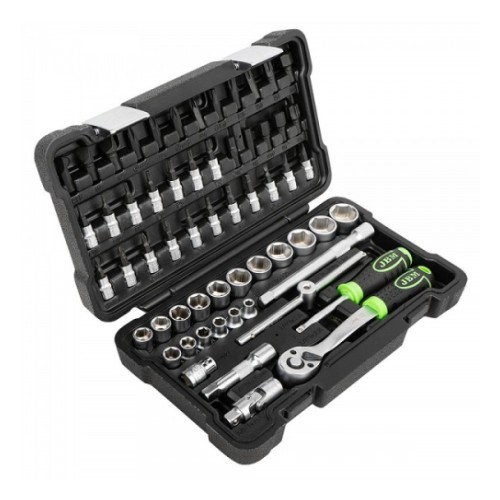 Universaalne tööriistakomplekt kodukasutusse. DYI ja väiksematesse töökodadesse. Matt pinnatöötlus. Kohvri lukustid on terasest. Tugev. uue põlvkonna plastkohver. Komplekt sisaldab:3/8" padrun 6-7-8-9-10-11-12-13-14-15-16-17-18-19-20-21-22 mm3/8" pikendused 75-150 mm3/8" adapter otsikutele (8 mm)3/8...