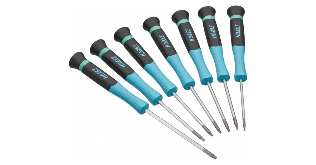 Kruvikeerajate komplekt Saksa tootjalt HAZET. Kruvikeeraja pidemeosa on valmistatud 3K libisemise kindlast 3-komponendilisest materjalist. Pidemeosa kuju tagab käele ergonoomilise haarde ning maksimaalse keeramise momendi. Pidemeosa otsas on värvkodeering. millelt kasutaja näeb mõõtu ja tööosa suurust. Kruvikeeraja metallosa on mattkroomitud. tööosa fosfaaditud. Tooted on pakitud pappkarpi.