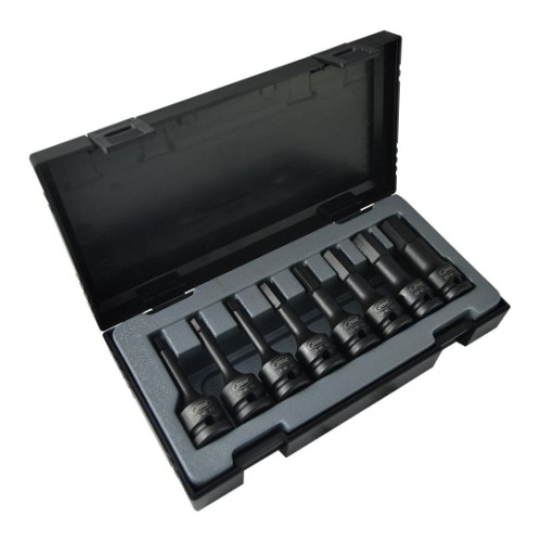 Kvaliteetne pikkade (78 mm) löök-kuuskant otsikute komplekt karbis. Otsikud on 1/2" keeramisadapteri avaga. kasutatavad lööktööriistadega või ka käsitsi keeramiseks. Kroom-molübdeen eriterasest. Fosfaaditud pinnatöötlus. Komplekt sisaldab:1/2" pikk löök kuuskantotsik 5-6-7-8-10-12-14-17 mm