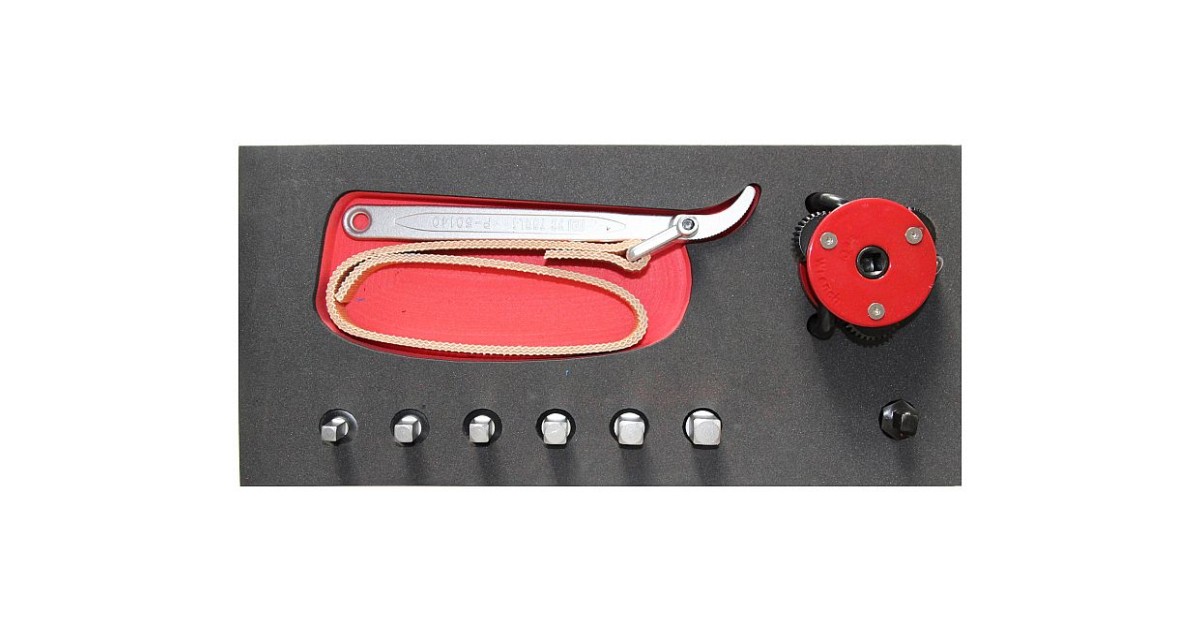 1/3 moodul. 2-värviline. Süvendipõhjad punast värvi. et oleks puuduv tööriist kergelt märgatav. Pestav ja puhastatav. Komplekt sisaldab:1/2" õlikorgi nelikantvõtmed 8-10-12-14 mm1/2" õlikorgi nelikantvõtmed 3/8"-1/2"3-käpaline õlifiltri võti 65-120 mm läbimõõtudeleRihmaga õlifiltri võti 30-160 mm lä...