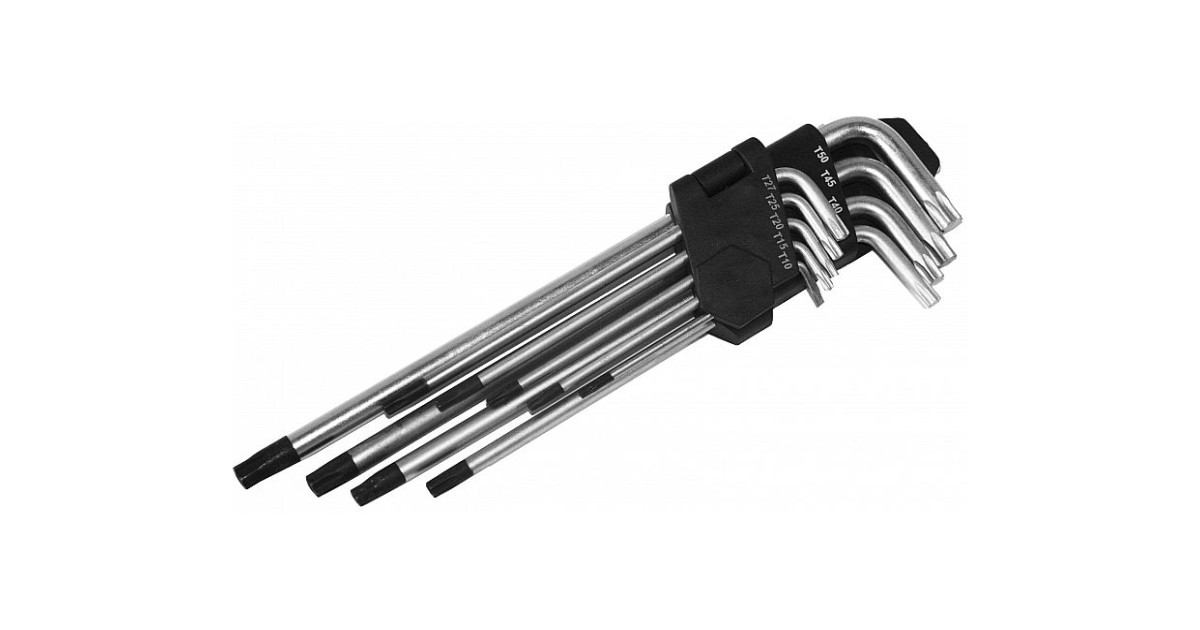 Keskmise pikkusega. enamlevinud mõõdud. Avaga.Komplekt sisaldab: L-Torx võti avaga T10-T15-T20-T25-T27-T30-T40-T45-T50