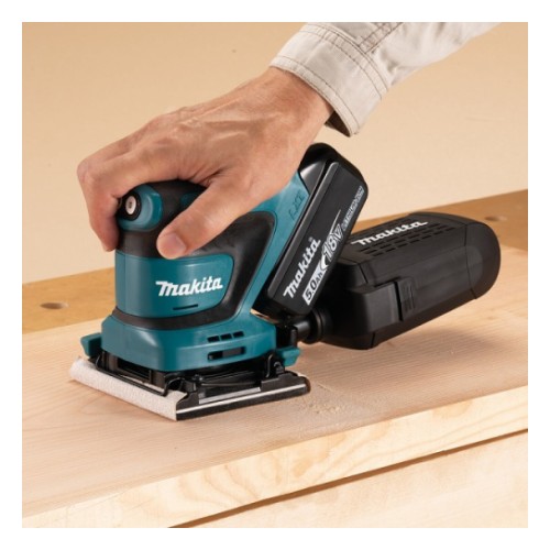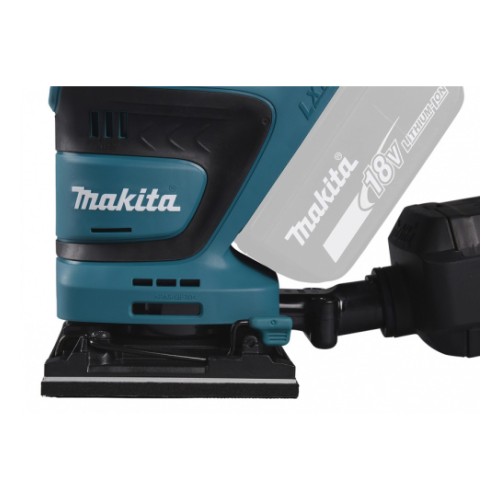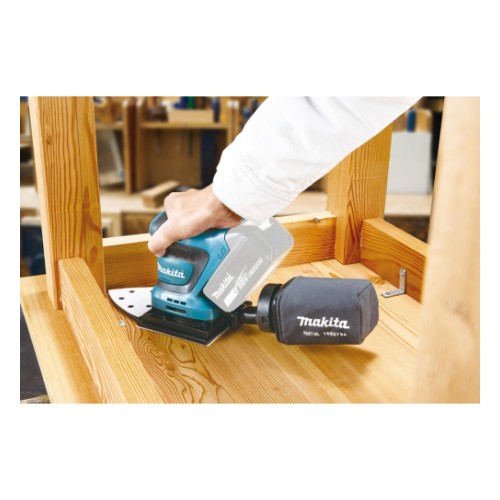 Saab kasutada augustatud abrasiivpaberit. Kompaktne. kerge ja mugava asukohaga sisse/välja lüliti võimaldavad töötada ühe käega. Tolmu kogumine läbi talla kogumissüsteemi tagab puhtama töökeskkonna. Suur kinnitushoob lihvimispaberi kiireks ja mugavaks paigaldamiseks. Elektriline pidur tagab kasutajal suurema ohutuse. Ergonoomiline käepide on kaetud libisemisvastase materjaliga. Tööriistal on takjakinnitusega tald. Tarnitakse ilma aku ja laadijata.