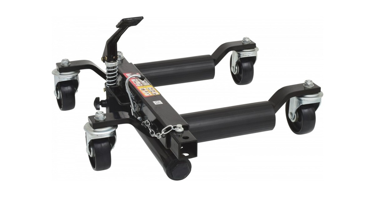 Autode teisaldamiseks müügisaalis. töökojas. näitustel jne. Tugev terasraam. millel plastist rullid. Raami kokkusurumine/auto ratta maast lahti tõstmine hüdraulilise silindri ja jalapedaali abil. Piduriga ratas. kummikattega. Ühe rakise kandejõud 700 kg. Sobib ratastele läbimõõduga 13"-19". Max rehvi laius 228 mm.