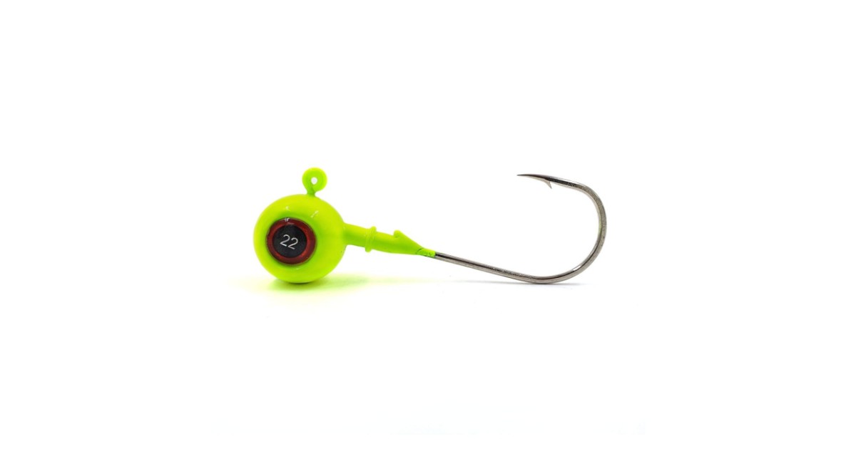 Джиг-головка, 3D глаза, 22 г, желтая, на крючке Gamakatsu 5/0, 2 шт, Merganser