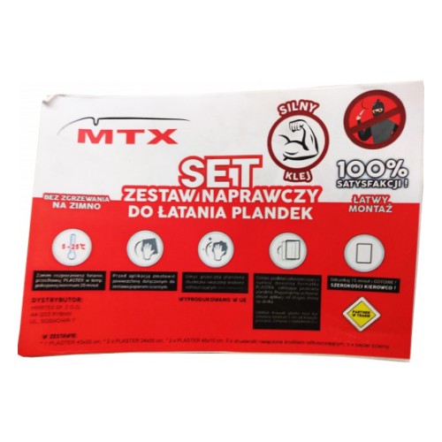 Innovatiivne toode - haagise/veoki tendi parandamise komplekt. Tendi lappimiseks pole vaja enam soojaõhupuhurit - komplektiga saab tendi lapitud kasvõi teel olles. Spetsiaalne isekleepuv materjal. Komplektis kaasas puhastuslapid. liivapaber ja tendimaterjal. mille seljal ülitugev liimkiht (eri värvid ja mõõdud. vaata tootenime). Kleepida saab temperatuuridel 5-25°C. Lapp liimub/vulkaniseerub 15 min jooksul - sõitu võib jätkata! Valmistatud Poolas.