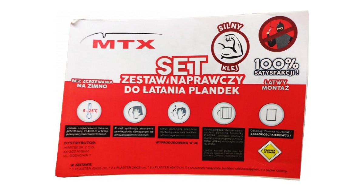 Innovatiivne toode - haagise/veoki tendi parandamise komplekt. Tendi lappimiseks pole vaja enam soojaõhupuhurit - kompelktiga saab tendi lapitud kasvõi teel olles. Spetsiaalne isekleepuv materjal. Komplektis kaasas puhastuslapid. liivapaber ja tendimaterjal mille seljal ülitugev liimkiht (eri värvid ja mõõdud. vaata tootenime). Kleepida saab temperatuuridel 5-25°C. Lapp liimub/vulkaniseerub 15 min jooksul - sõitu võib jätkata! Valmistatud Poolas.