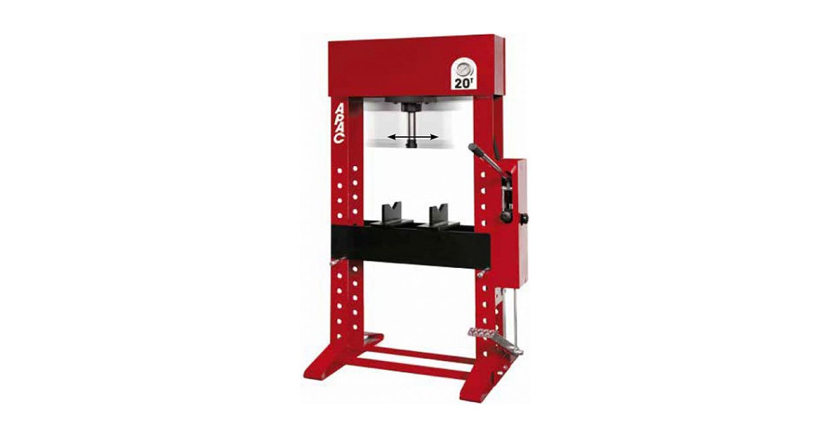 Vastupidav. keevitatud raamiga hüdrauliline press. Surukolb liigutatav vasakule ja paremale. Pressimisalus erinevatele kõrgustele seadistatav ja selle tõstmiseks-langetamiseks on pressil vints. Press on varustatud survejõu näidikuga. Käsipumbaga. pneumoajamiga. Automaatne surukolvi tagastus. Ülekoormuse kaitse. Kaasas plaadid. Lisana saab tellida pressimisadapterid ja jalapedaali.