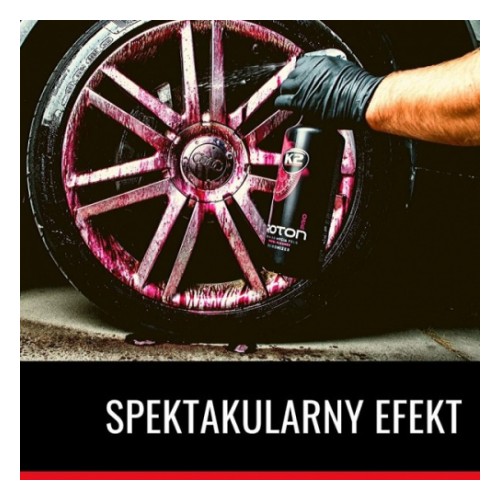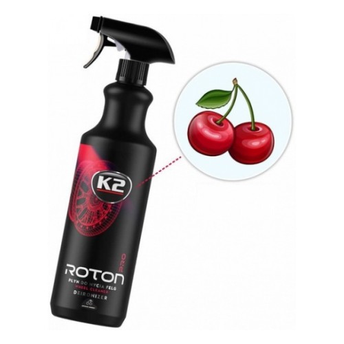 K2 ROTON PRO on ainulaadse koostisega geeljas veljepesuaine. mis on tänu oma erakordselt tõhusatele puhastusomadustele omandanud legendi staatuse ja saanud esimeseks valikuks neile. kes eales on määrdunud velgede puhastamisega silmitsi seisnud. See tuleb kergesti toime teemustuse või piduriklotside tolmuga. pakkudes silmailu suurejoonelise vaatemänguga. Veljepuhastusvahend muutub mustusega kokkupuutel punaseks. tõestades selle tõhusust ja võimaldades teil puhastusprotsessi kontrollida. Tõhus. kuid samas ohutu lakile. kummile ja plastikule. Sellel on neutraalne pH. Seda saab kasutada ka deironisaatorina metalliosakeste eemaldamiseks värvitud pindadelt. Tugevalt määrdunud pindade puhul soovitame kasutada K2 ROTON PRO veljepesuainet koos K2 SCEPTER PRO veljepesuharjaga. Veljepesuaine on meeldiva kirsi lõhnaga.