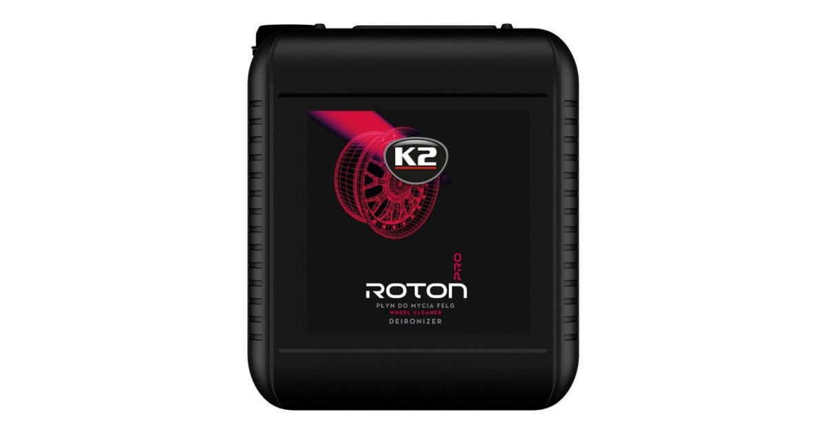 K2 ROTON PRO on ainulaadse koostisega geeljas veljepesuaine. mis on tänu oma erakordselt tõhusatele puhastusomadustele omandanud legendi staatuse ja saanud esimeseks valikuks neile. kes eales on määrdunud velgede puhastamisega silmitsi seisnud. See tuleb kergesti toime teemustuse või piduriklotside tolmuga. pakkudes silmailu suurejoonelise vaatemänguga. Veljepuhastusvahend muutub mustusega kokkupuutel punaseks. tõestades selle tõhusust ja võimaldades teil puhastusprotsessi kontrollida. Tõhus. kuid samas ohutu lakile. kummile ja plastikule. Sellel on neutraalne pH. Seda saab kasutada ka deironisaatorina metalliosakeste eemaldamiseks värvitud pindadelt. Tugevalt määrdunud pindade puhul soovitame kasutada K2 ROTON PRO veljepesuainet koos K2 SCEPTER PRO veljepesuharjaga.