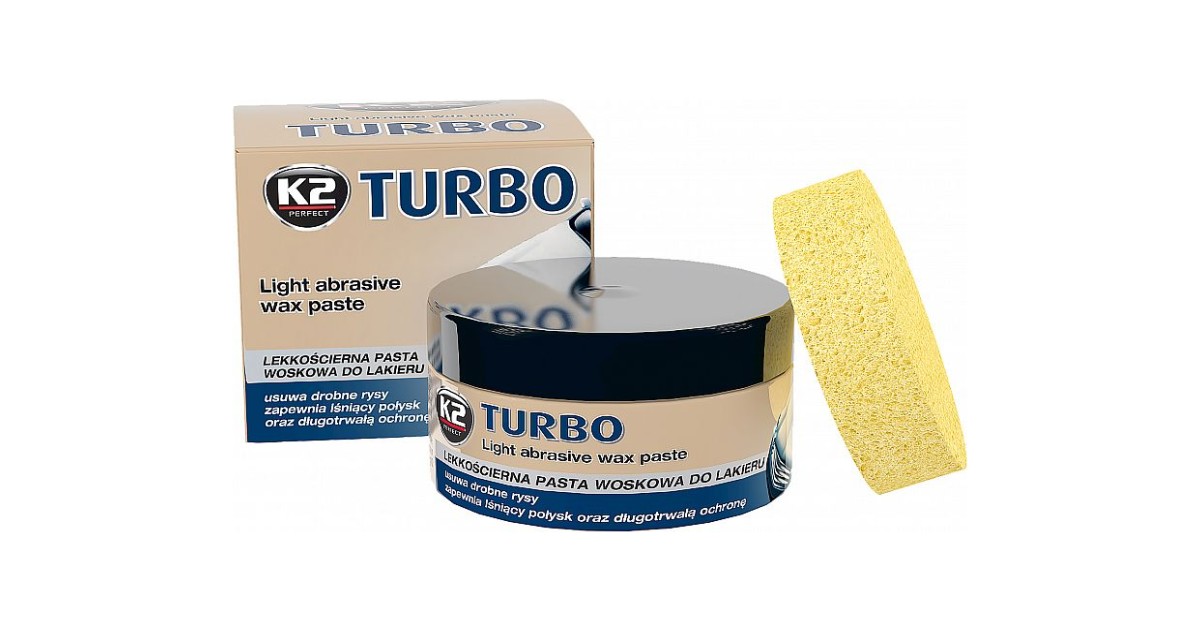 K2 TURBO on Poolas värvihooldustoodete seas absoluutne müügiliider. Kaasaegne ja end tõestanud toode on saanud oma hekskiidu miljonite rahulolevate klientide poolt 30 riigis üle maailma. Toodet on pärjatud auhindadega mainekatel rahvusvahelistel leiutiste ja uuenduste messidel. sh. Jenas (Saksamaa). Brüsselis (Belgia). Soulis (Lõuna-Korea). See sisaldab spetsiaalseid K2 NANOTECH nanoosakesi. Tänu sellele eemaldab see hõlpsalt ka kõige väiksemad kriimud. ilmastikumõjud. õliplekid. asfaldi ja putukajäänused. Seda on lihtne peale kanda ja see nõuab vähe poleerimistööd. Annab lakile peegelsära. Sobib suurepäraselt igat tüüpi lakkidele: akrüül-. metalliseeritud ja pärllakk. K2 TURBO pasta on sertifitseeritud Varssavi riikliku hügieeniinstituudi poolt välja antud sertifikaadiga tooteks.