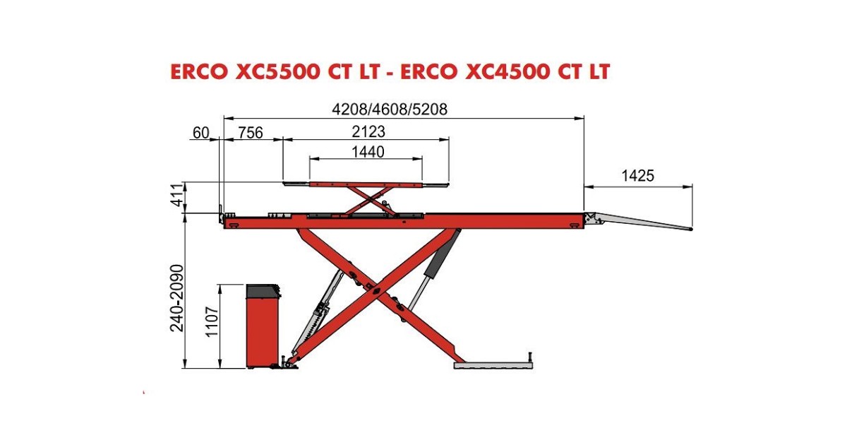 Käärtõstuk Platvorm 5.0T 5200Mm Erco X5000 Ct Lt Pt Koos Lisatõstukiga Sillareguleerimisvalmidusega Ja Juhtmevaba Lõtkutestriga Corghi