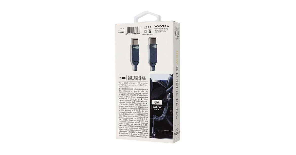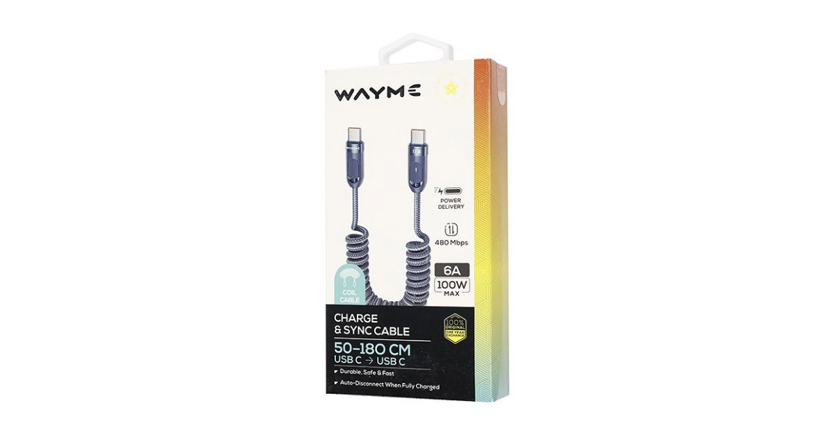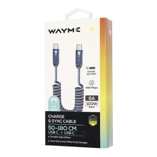 Laadimisjuhe Põimitud Spiraal Usb-C-Usb-C. Max 100W. 50-180Cm Wayme