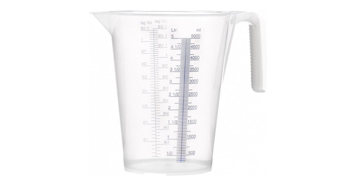Läbipaistev Mõõtekann/Valamiskann 5L. Skaalaga. Nokaga Pressol