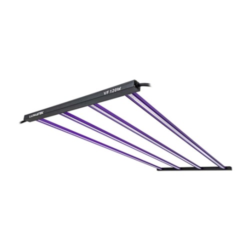 VF120W состоит из четырех светодиодных линеек мощностью 30 Вт с белыми диодами 4000K и теплыми белыми диодами 3000K, с общим выходом PPF 308 мкмоль/с и эффективностью 2,4 мкмоль/Дж.