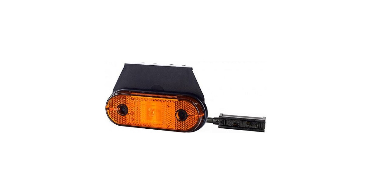 Küljetuli helkurosaga. LED valgusdioodidega. Eemaldatav jalaosa. 12/24 V elektrisüsteemiga autodele ja haagistele. Võimsus 0.6/1.2 W. Ühendusjuhtme pikkus 10 m. E-markeeritud. Pikkus 120 mm. jalaga kõrgus 74 mm. jalata kõrgus 46 mm. paksus koos kaablisisend osaga 25 mm. Kinnitusavade vahe 70 mm. Valmistatud Poolas.