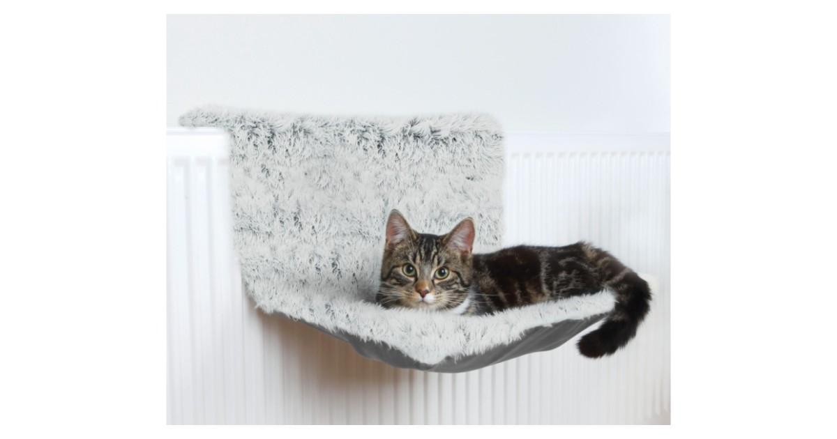 Лежак на радиатор, длинношерстный плюш/под замшу, 45 × 26 × 31 cm, бело-черный