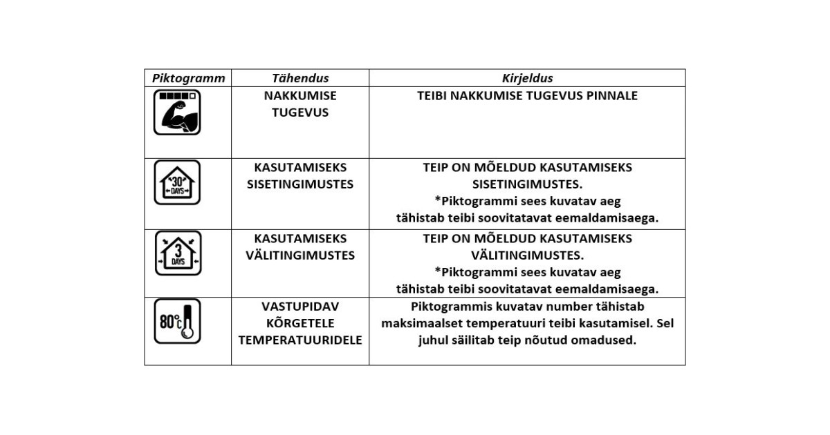 Liimaine: naturaalne kautšuk, lindi kogupaksus 145µm.