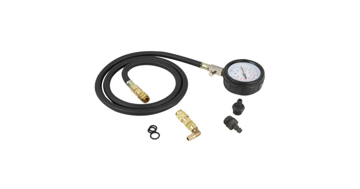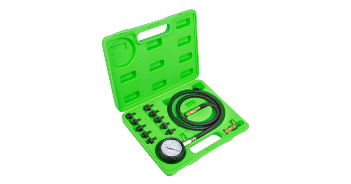 Õlisurve mõõtmise komplekt 0-10 bar rõhule. Komplektis mõõtekell koos vooliku ja kiirliides otsikuga ning meetermõõdus ja tollmõõdus adapterid. Tugevas plastkohvris.