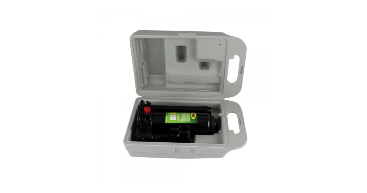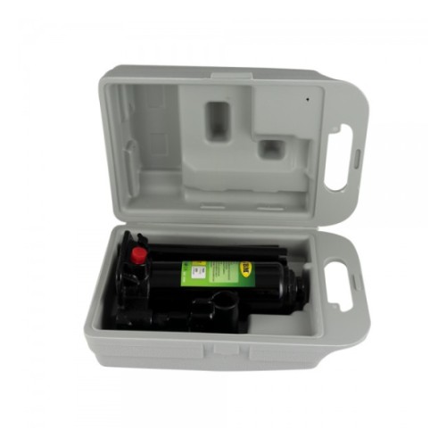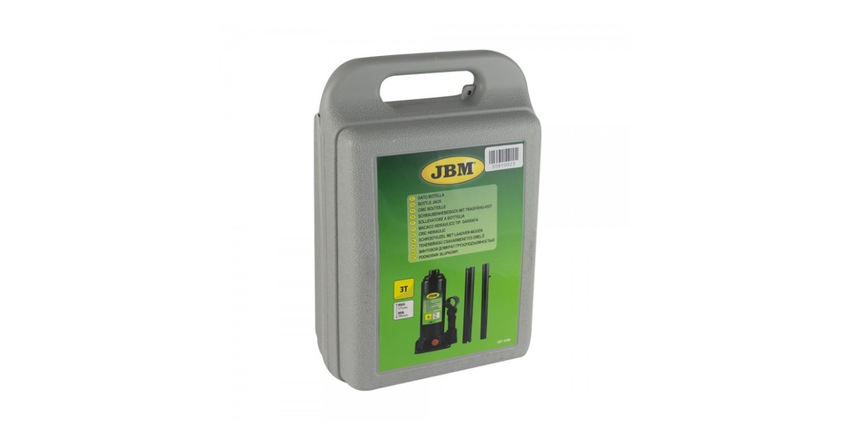 Klassikaline pudeltungraud. Hüdrauliline tõstesilinder. millele lisaks keermega kruviosa. Valuterasest toetusplaadiga põhi. Plastkohvris. Valmistatud Hiinas.