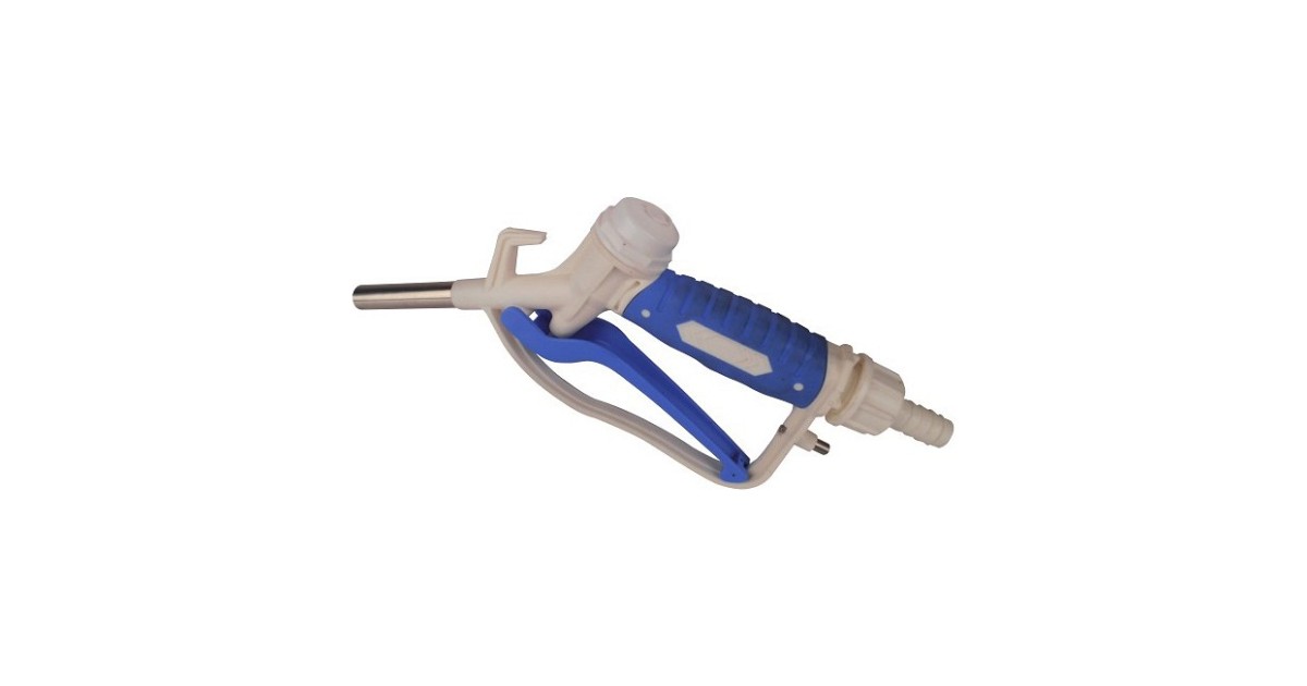 Eriplastist valmistatud AdBlue täitepüstol. Max 80 l/min. manuaalne. 3/4" keere. Metallist väljundtoru läbimõõt 15 mm.