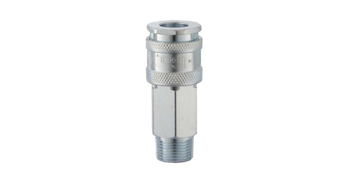 XF (Euro)-tüüpi suruõhu kiirliitepesa R1/2" (BSPT) väliskeermega. Ava 7.4 mm. max õhu läbivool 2200 l/min@6bar. Tootja PCL. Inglismaa.