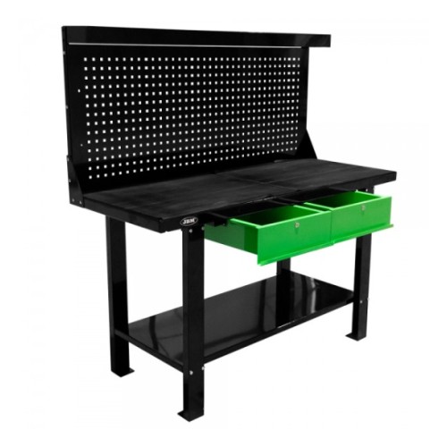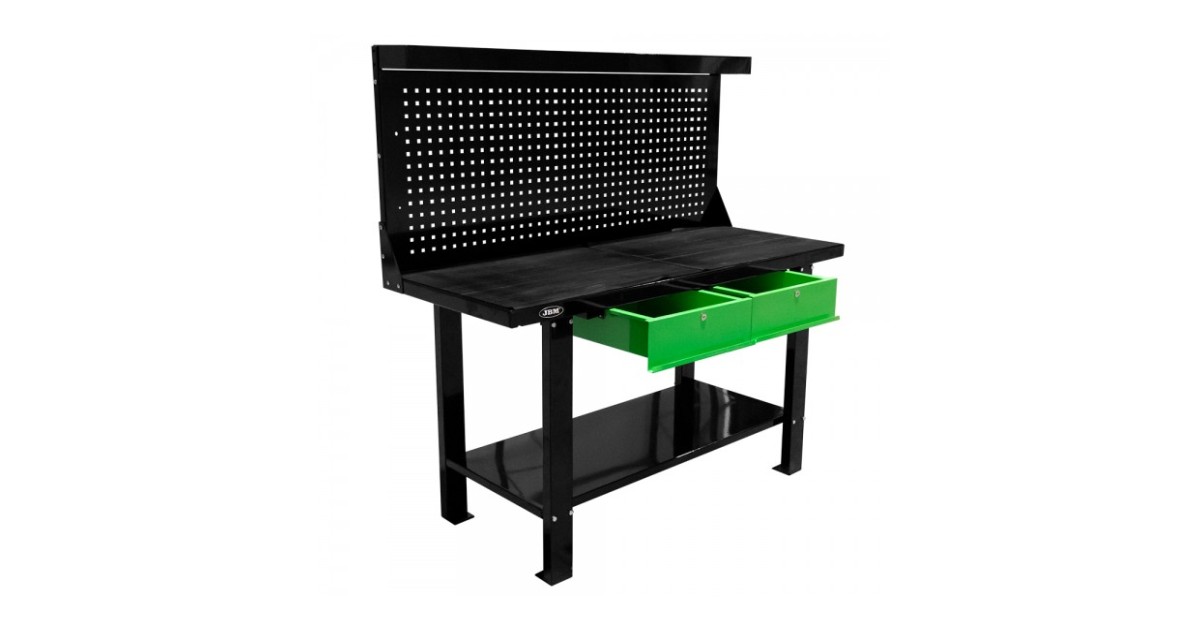 Korralik ja soodsa hinnaga töölaud. millel kaks sahtlit. Perfosein tööriistade riputamiseks. riiul ning karniis valgusti kinnitamiseks. Tugevad nelikantjalad. Lauaplaadi mõõdud 1500x640 mm. üldkõrgus 1550 mm. perfopaneeli kõrgus 610 mm. koos valgustikarniisiga 680 mm. Korralikud plaadi-jala kinnitused. poltliides. Keemia- ja õlikindel pinnavärv.