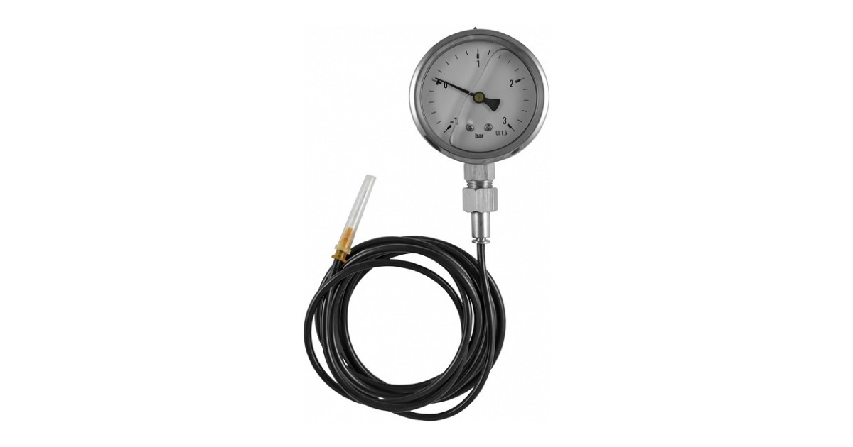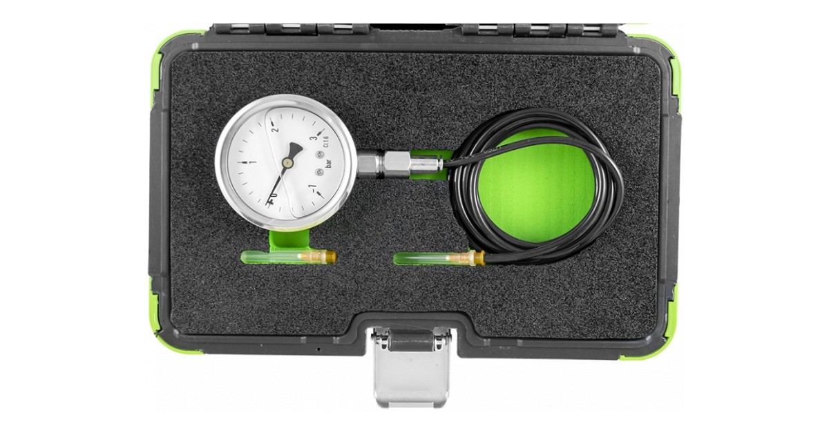 Plastkohvris. metallist kellaga turbosüsteemi rõhu mõõtja. Vooliku pikkus 2 m. Rõhk 1 kuni 3 bar.