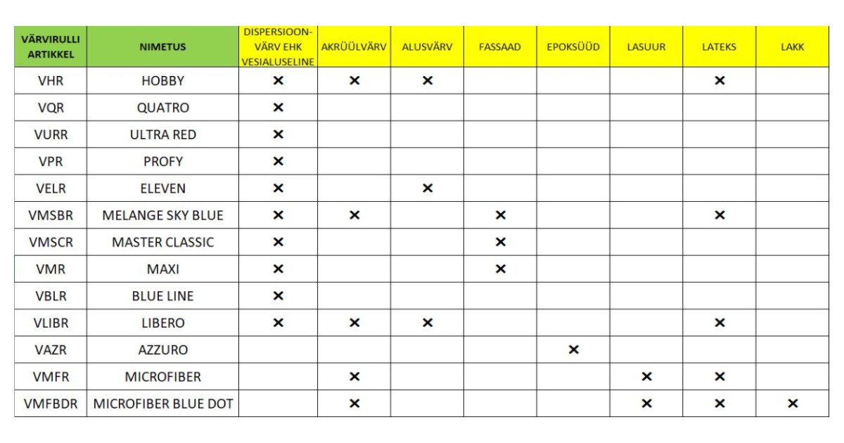 Kasutamiseks akrüül- ja epoksiidvärvi pealekandmiseks. Värvirull on vastupidav kõigile tuntud lahustitele, soovitatav kasutada tasastel pindadel.