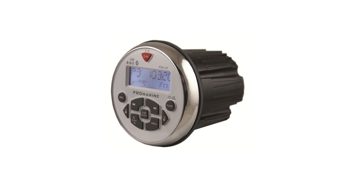 LTC Promarine Bluetooth Stereo в круглом компактном корпусе, который 100 % водонепроницаем IP67. Хорошо вписывается в другие приборы на борту. Доступна в черном и белом цвете, оба варианта с хромированным наружным кольцом. Стерео имеет усилитель MOSFET 4 x 65 Вт. Стереосистема имеет встроенный Bluetooth для потоковой передачи музыки непосредственно с вашего мобильного телефона (идеально подходит для Spotify). RDS-радио с восемью предустановками и встроенной памятью. При отключении питания ваши настройки останутся в памяти. Двухрядный яркий дисплей, USB и AUX входы (на задней панели) и эквалайзер с четырьмя различными настройками, а также отдельная настройка низких и высоких частот. Диаметр: 91 мм. Также подходит для ванных комнат, саун и открытых площадок.