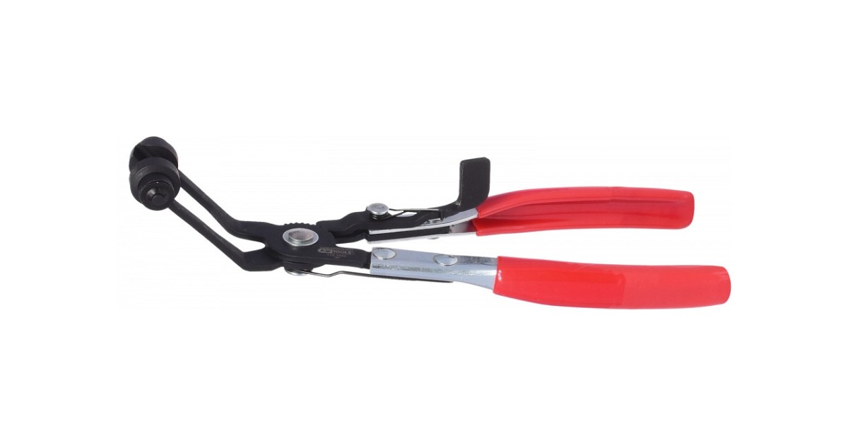 Vedru-tüüpi voolikuklambri avamise tangid. 45° nurga all tööpea. Kogupikkus 220 mm. Lukustatavad.
